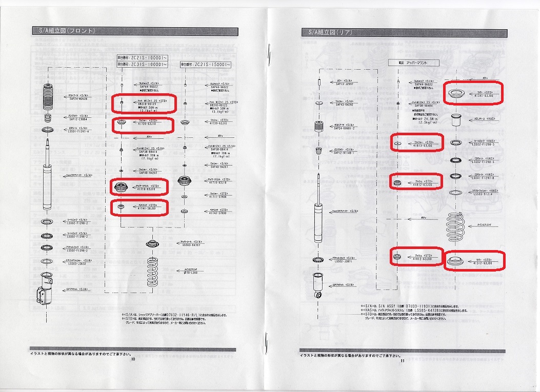 純正部品を使いまわしてもいいのですが、アッパーマウントはへたってそうなので